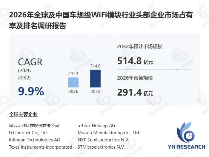 《2026年全球及中国车规级WiFi模块行业头部企业市场占有率及排名调研报告》本文调研和分析全球市场发展现状及未来趋势,核心内容如下: