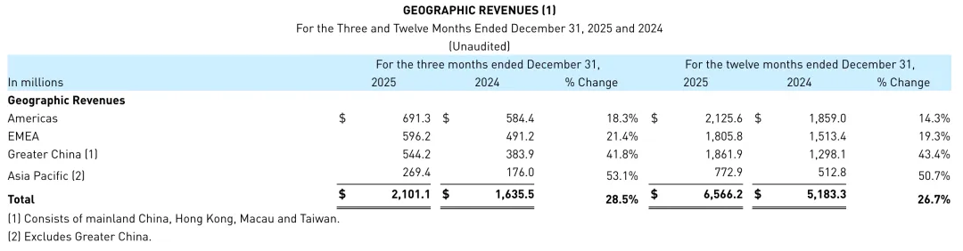 其中,大中华区2025年第四季度收入同比增长41.8% ,2025年全年收入同比增长43.4%