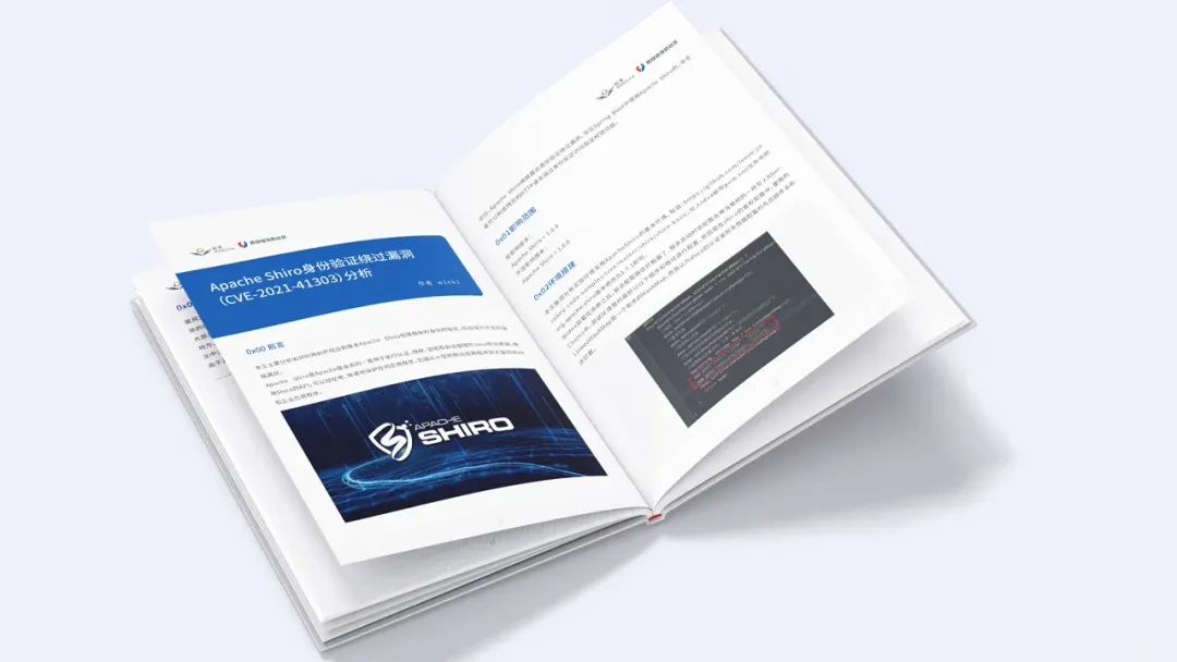色彩克制: 全书只使用一种主色——“奇安信蓝” 。通过深浅透明度的变化来区分信息层级,保持视觉的纯净与统一。代码高亮: 我们没有简单地粘贴代码截图,而是重新排版了代码区域。深蓝色的背景底块,配合高亮的代码文字,模拟了程序员最熟悉的IDE(集成开发环境)界面。