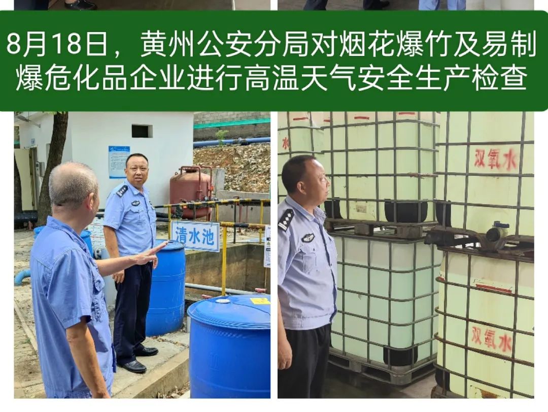 ● 8月18日,黄州公安分局对烟花爆竹及易制爆危化品企业进行高温天气安全生产检查。