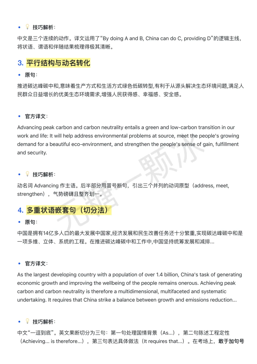 【碳达峰碳中和白皮书】CATTI 长难句解析