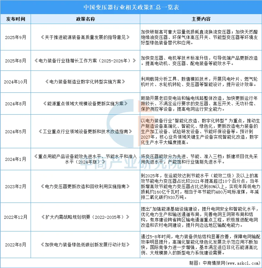 近年来,我国出台多项国家级政策如《关于推进能源装备高质量发展的指导意见》《电力装备行业稳增长工作方案(2025-2026年)》《电力装备制造业数字化转型实施方案》等,聚焦变压器能效升级、设备更新、数字化转型等方向,为行业高质量发展奠定了坚实基础。