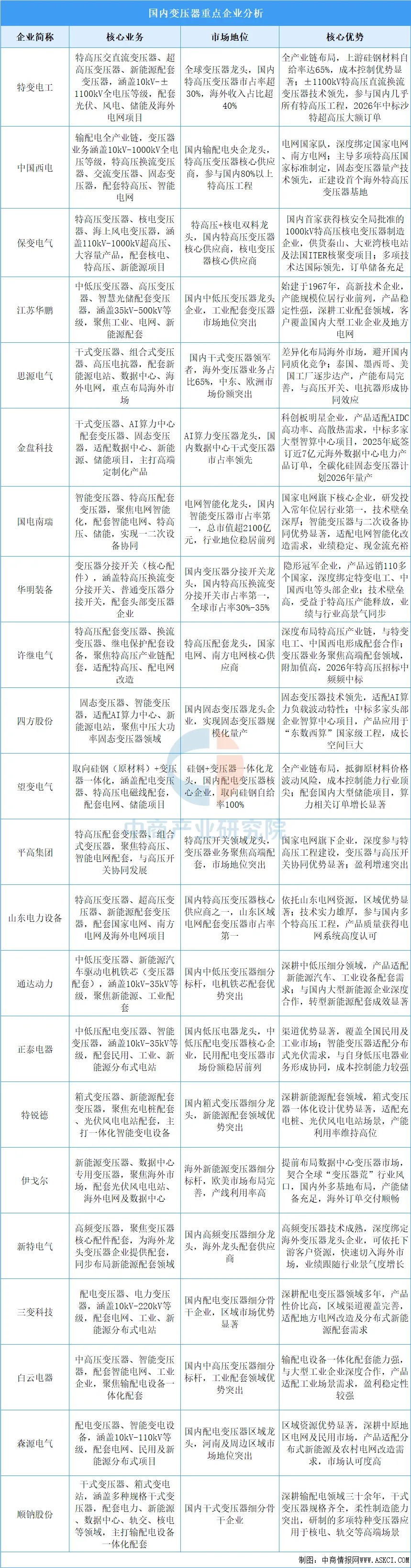 变压器行业重点企业