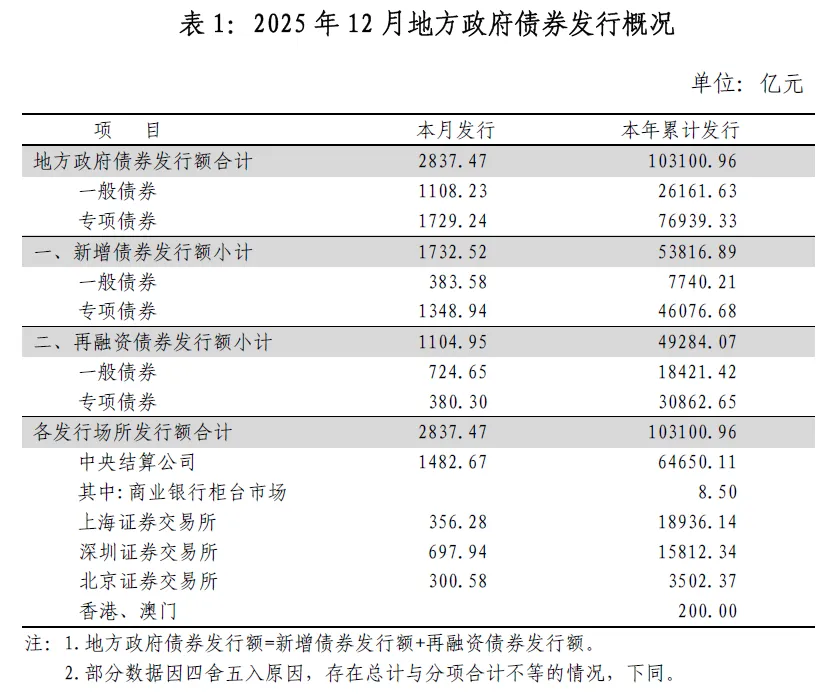 12月,地方政府债券发行规模2837.47亿元,环比减少6289.44亿元,同比减少8075.23亿元;平均发行期限11.89年,环比减少2.74年,同比减少6.48年;平均发行利率2.05%,环比下降3bp,同比下降8bp。债券二级市场现券交易19200.28亿元。