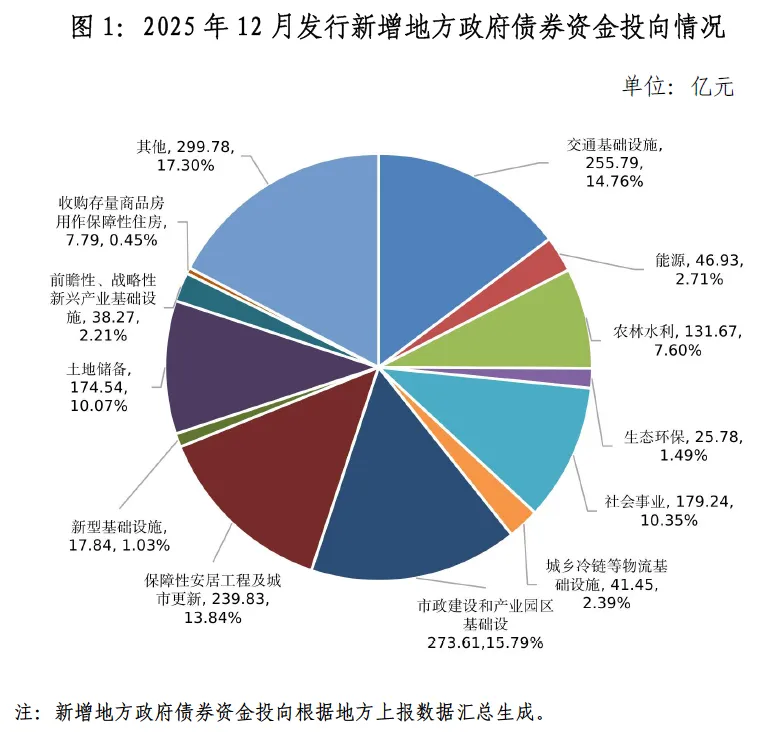 从债券资金投向看,新增债券资金用于市政建设和产业园区基础设施273.61亿元;交通基础设施255.79亿元;保障性安居工程及城市更新239.83亿元;社会事业179.24亿元;土地储备174.54亿元;农林水利131.67亿元;能源46.93亿元;城乡冷链等物流基础设施41.45亿元;前瞻性、战略性新兴产业基础设施38.27亿元;生态环保25.78亿元;新型基础设施17.84亿元;收购存量商品房用作保障性住房7.79亿元;其他299.78亿元(见图1)。