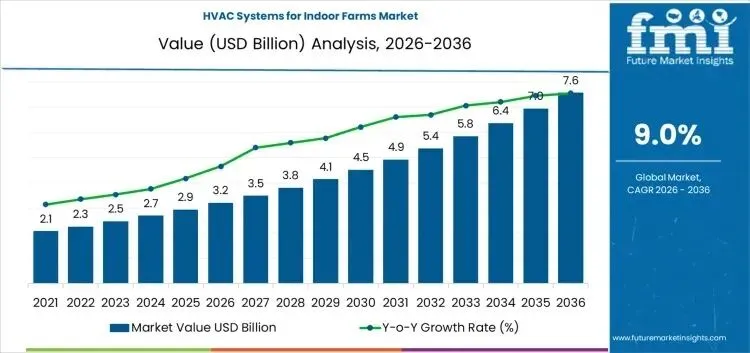 室内农场暖通空调系统市场估值为2026年32亿美元,预计到2036年将达到76亿美元,复合年增长率为9%。