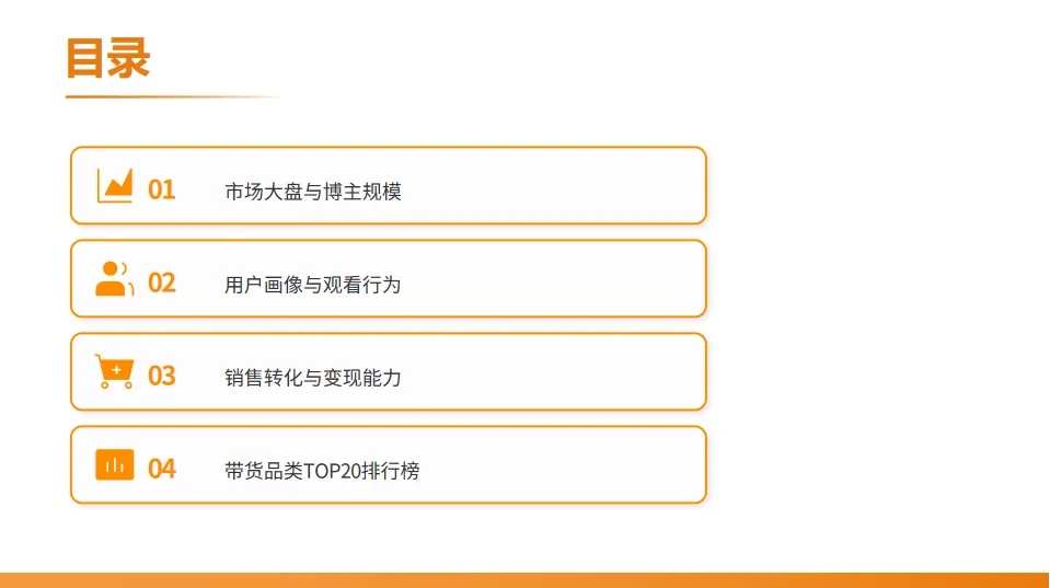 本报告将分为四个部分:首先看市场的整体规模和创作者生态;接着分析核心用户群体的特征和行为;然后探讨销售转化的关键数据;最后,将揭晓最受欢迎的带货品类TOP20排行榜(按销量)。