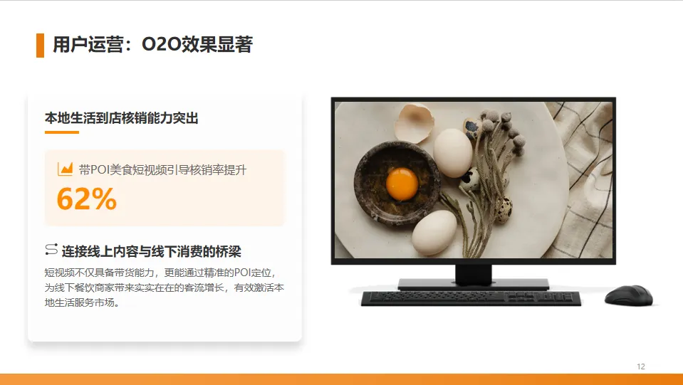除了电商带货,美食短视频在本地生活服务方面也表现突出。带有商家位置信息的视频,能显著提升用户到店消费的核销率,增幅高达62%,为线下餐饮带来了巨大的引流价值,大力促进O2O。