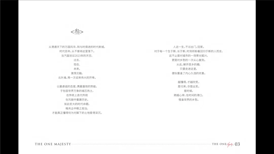 本方案为中粮北外滩高端地产项目制定的品牌焕新策略。面对产品同质化困境,策略团队摒弃传统“海派文化”陈词,转向深入挖掘地块的集体记忆与港口文化,提炼出“世界的乡愁,时间的港口”核心情感价值。项目定位为“隐逸北外滩,世族臻藏墅”,旨在吸引具有世界视野、怀有乡愁情结的高净值客群。传播分三阶段递进:以“乡愁”启动市场认知,以“港口”深化文化内涵,最终以“延续”完成价值落地,通过纪录片、艺术展、跨界发布会等系列高端事件,构建独特的情感认同与品牌叙事。