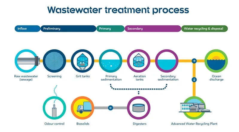 Wastewater treatment involves extensive sewer networks spanning thousands of kilometres, varying in size across regions and countries. Once wastewater reaches treatment plants, four stages include 污水处理涉及到绵延数千公里的庞大的排污管网,具体因国家和地区而异。污水进入处理厂后,将经过以下四个处理阶段: