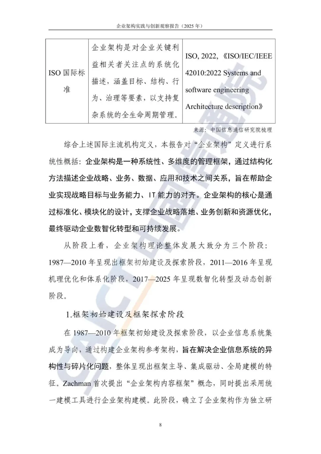 《企业架构实践与创新观察报告(2025年)》由中国信息通信研究院云计算与数字化研究所发布。报告指出,随着数智技术日趋成熟并与产业深度融合,数智化转型已成为企业生存与发展的刚需。然而,许多企业在转型深水区面临战略解码断层、业技协同壁垒、价值量化困境等共性难题,陷入‘深化转型转不动’的困局。报告认为,企业架构作为连接战略与执行的核心方法论,是破解这些难题、驱动转型效能提升的关键。