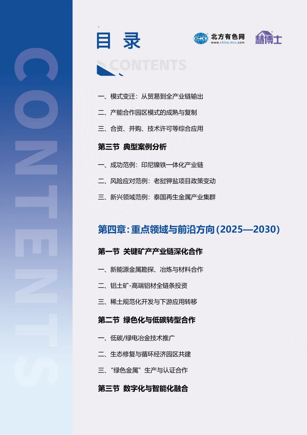 报告系统评估了东南亚主要资源国的禀赋条件与开发潜力,总结了以印尼镍产业链、老挝钾盐项目为代表的合作成果与模式演进,并对新能源金属、绿色冶炼、循环经济、数字化等重点前沿方向进行展望。