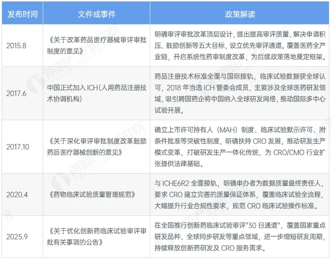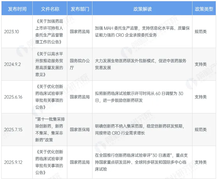 (*数据来源:前瞻产业研究院《2025年中国医药研发外包(CRO)行业政策汇总及解读》)