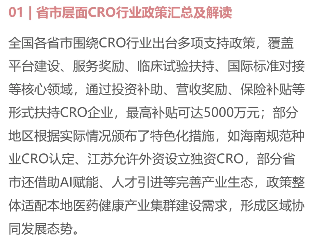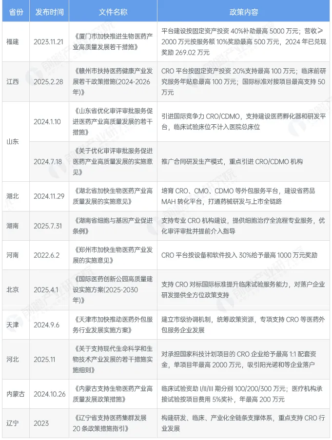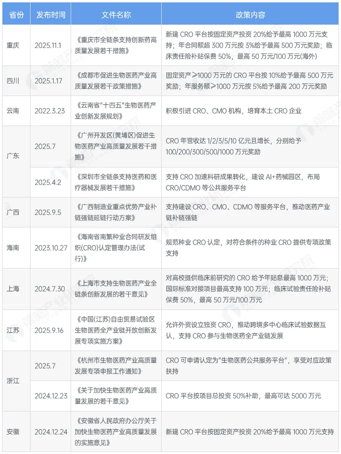 截至2025年11月各省市层面有关CRO行业政策重点内容解读 (一)