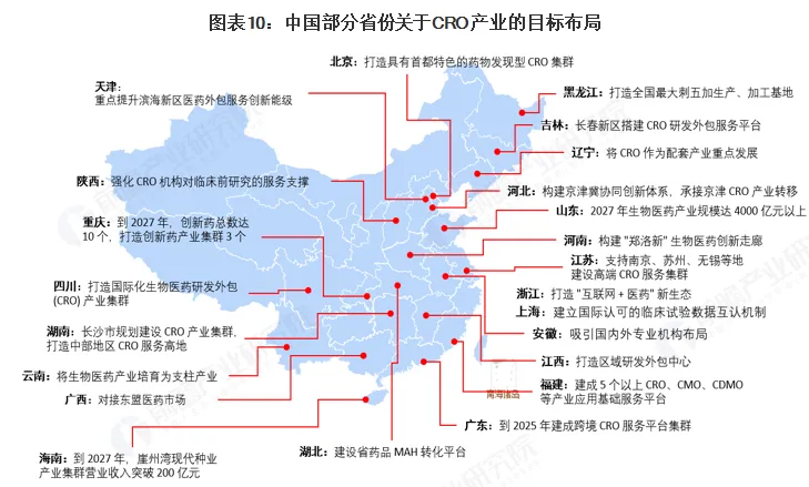 中国部分省份关于CRO产业的目标布局