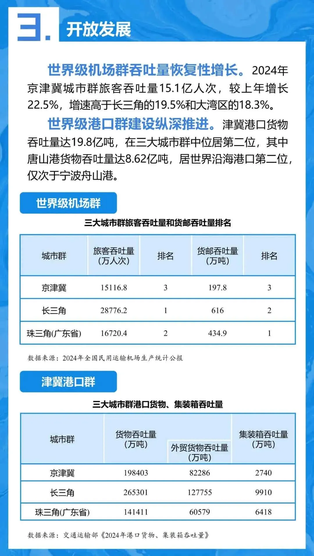 - 机场群: 2024年旅客吞吐量1.51亿人次,增速(22.5%)高于长三角和大湾区。