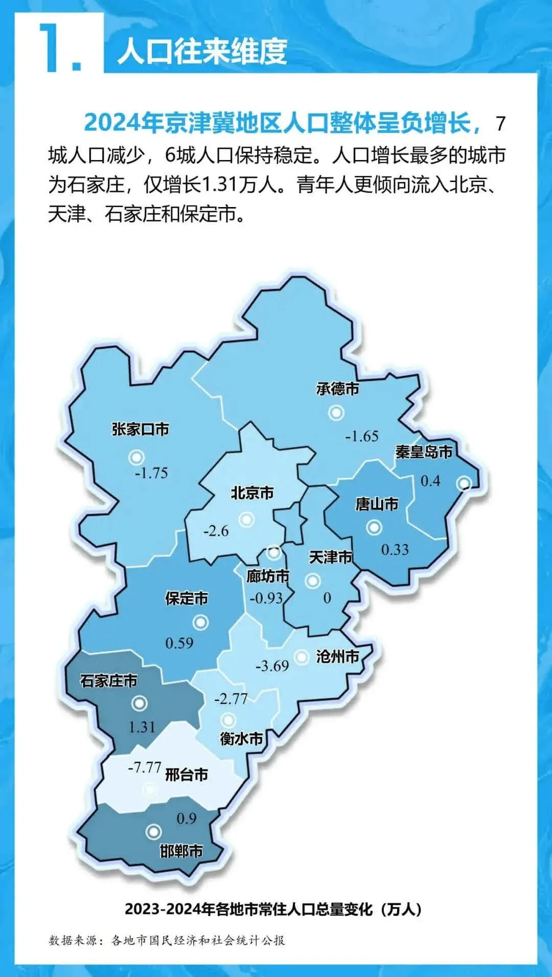 - 总量: 2024年京津冀人口减少18万人,进入深度老龄化阶段(65岁以上占比16.72%)。