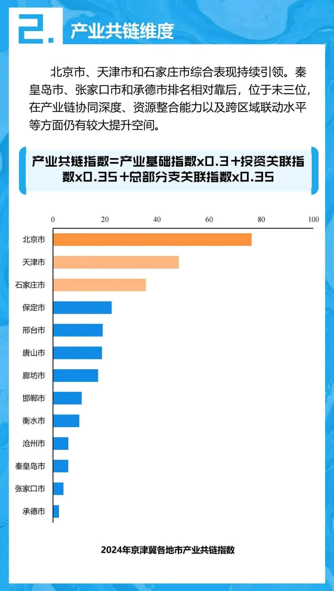 - 交通共融: 北京、石家庄、天津排名靠前,京津同城化联系因城际运能提升而强化。