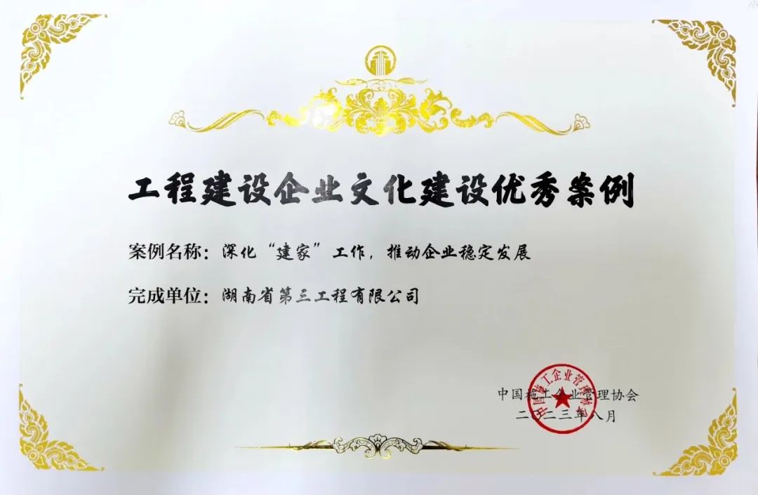 近日,由中国施工企业管理协会举办的2023年工程建设行业文化大会在湖北武汉召开,会议围绕工程建设行业企业文化建设和品牌发展等内容进行了交流汇报、成果展示,并组织前往中国建筑科技馆和桥梁博物馆进行参观学习。大会公布了2023年工程建设企业文化建设系列活动成果,公司报送的《深化“建家”工作,推动企业稳定发展》获评为2023年度“工程建设企业文化建设优秀案例”,四名员工被聘为“工程建设企业文化建设专家”。
