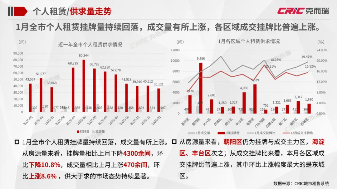 以上是2026年1月北京版租赁住宅行业监测报告精选内容预览,如您需要完整详细内容(25p),请联系:15001316537,010-85870606。CRIC城市租赁系统-北京版已发布,涵盖8大租售数据维度、4大功能场景。同时克而瑞北京研究组为合作企业提供城市进入、投拓资源、市场研究、竞品监测、企业培训等各项线下服务。目前系统可开放免费试用,有意向者请联系:15001316537,010-85870606。