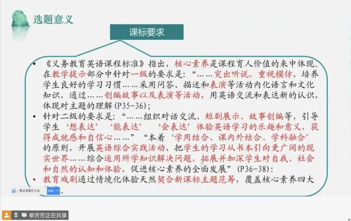 课标要求:政策引领,有据可依单老师结合《义务教育英语课程标准》原文,指出课题与课标要求的高度契合: