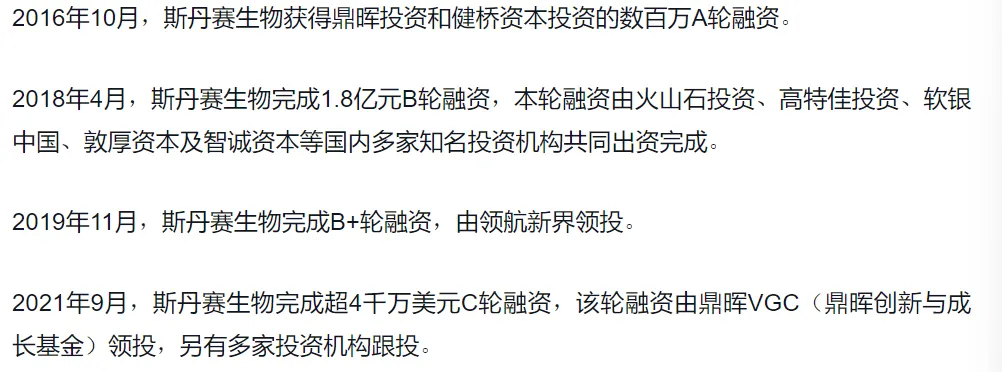 分析:斯丹赛的高管团队配置在初创生物技术公司中堪称“顶配”。特别是引入前FDA审评专家直接操盘注册事务,显示了公司从一开始就瞄准美国市场的全球化战略,而非局限于国内“内卷”。