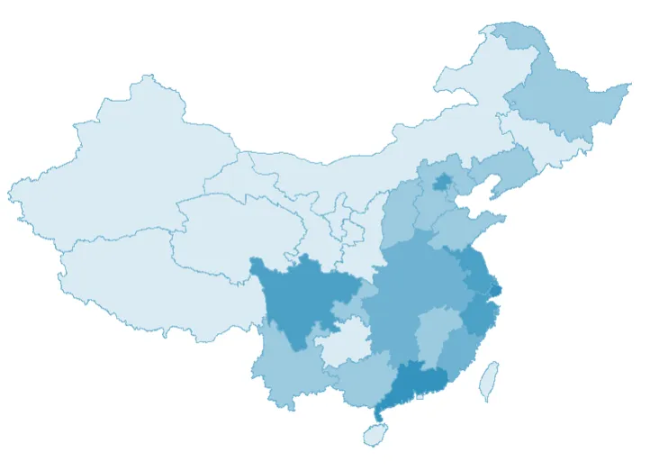 参与者的省份分布(颜色越深,代表参与人数越多)