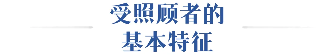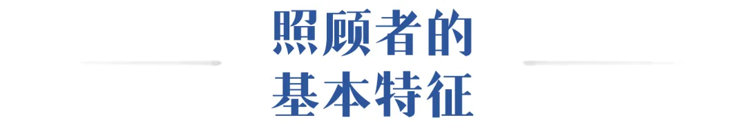 参与本次调查的照护者中,女性占到了绝大多数(84.5%)。所有照顾者的中位年龄为45岁。绝大多数的照顾者生活在城市地区(83.0%)。绝大部分的照顾者(63.3%)为本科及以上学历,其中本科46.3%,硕士15.5%,博士1.8%。已婚/非单身的照顾者占83.0%。全职工作的照顾者占64.2%,兼职占9.6%,家庭主妇/夫占7.6%。44.2%的照顾者都生活在三口之家。照顾者的中位家庭全年总收入为20万元,其中收入≤10万元的家庭占32.2%,10–20万元的家庭占25.7%,20–40万元的家庭占21.5%,超过40万元的家庭占20.6%。34.6%的照顾者报告患有一种慢性疾病,10.1%的照护者罹患多种慢性疾病。领政府补贴的照顾者仅占8.7%。