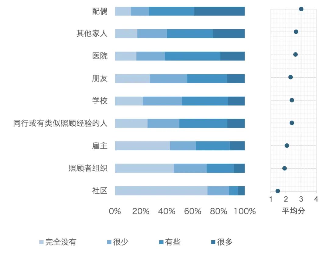 没有其他照顾者可以协助的家庭,其主要照顾者的抑郁、焦虑、照顾负担均显著更高;这些照顾者的积极应对能力更低,掌控感也显著更低。