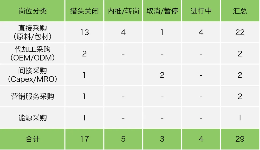 在猎头成功关闭的 17 个岗位中,薪资预算 50 万以内的岗位占比达52.9%(9 个)。这表明,即使是年薪 30-50万的采购岗位,企业HR通过自有渠道直接招聘的难度也在显著增加,对专业猎头的支持需求愈发迫切。