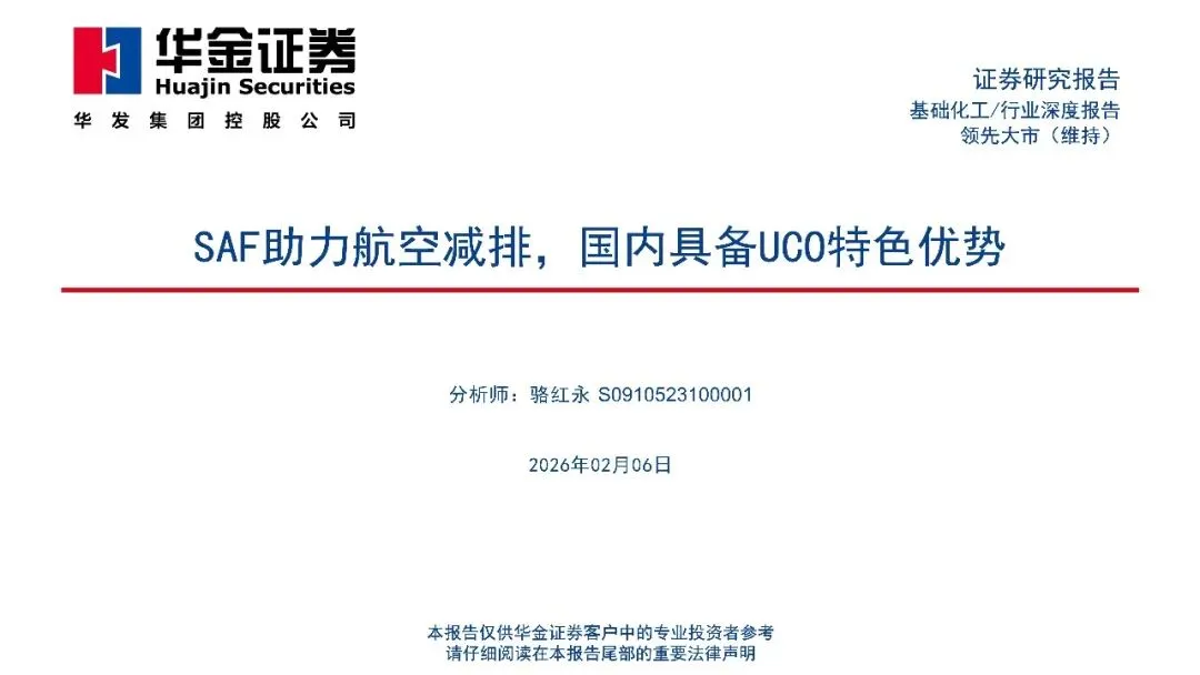 基础化工行业深度报告:SAF助力航空减排,国内具备UCO特色优势(附下载)