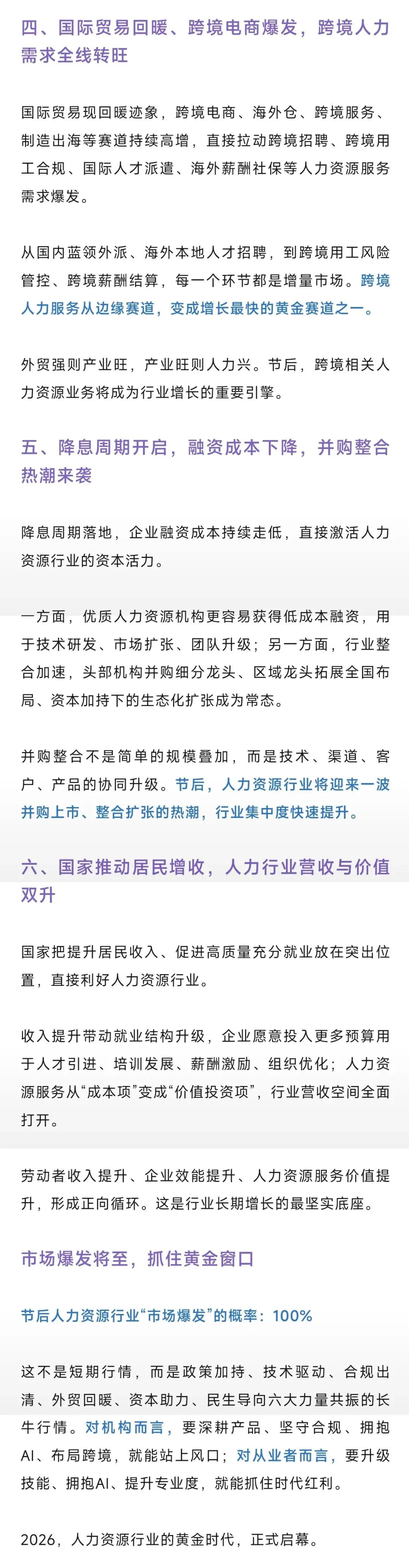 区域协同与出海服务:分析全国统一大市场建设下,如何打破地域限制,利用人力资源服务产业园、出口基地等平台,探索“企业出海”配套的人力资源服务(如海外用工合规、跨境薪酬社保管理、国际人才猎头),寻找新的增长曲线。