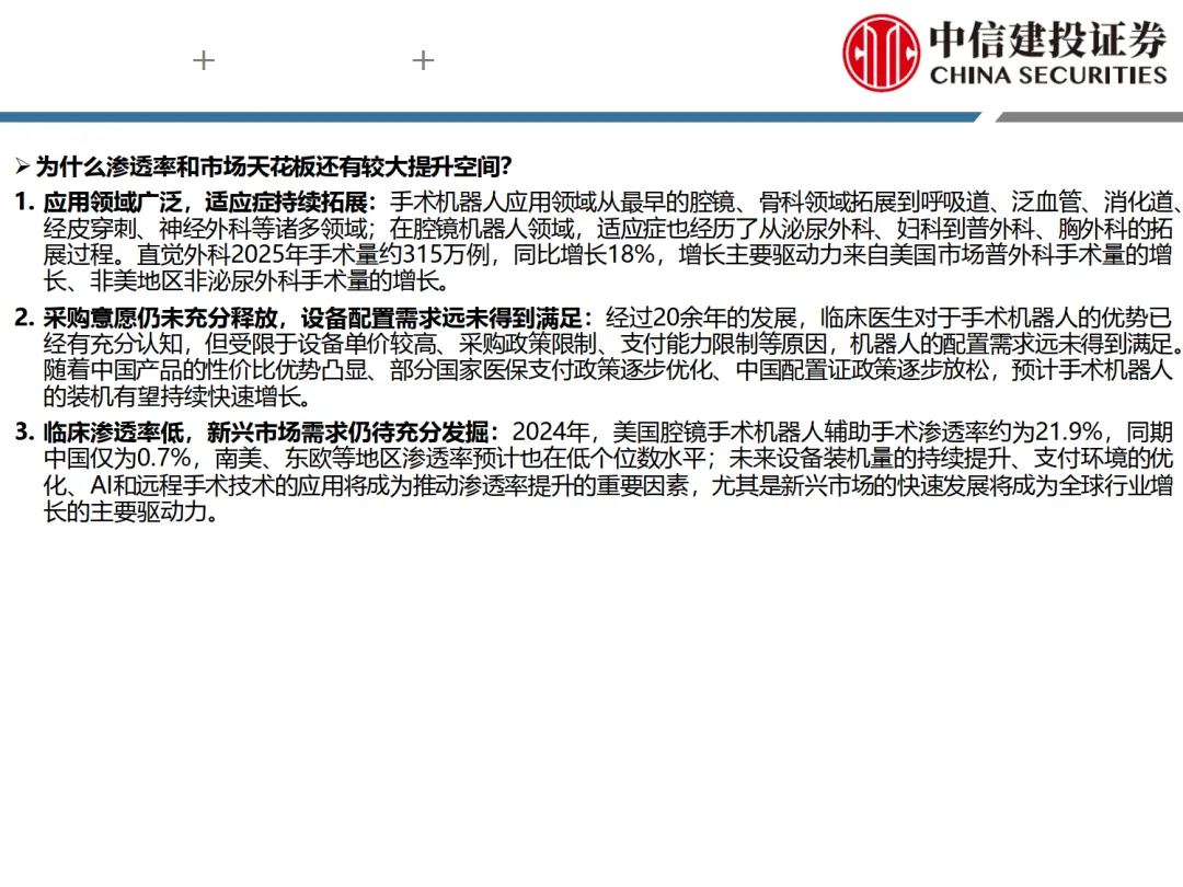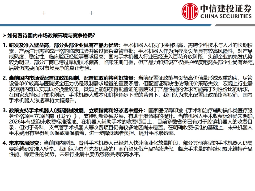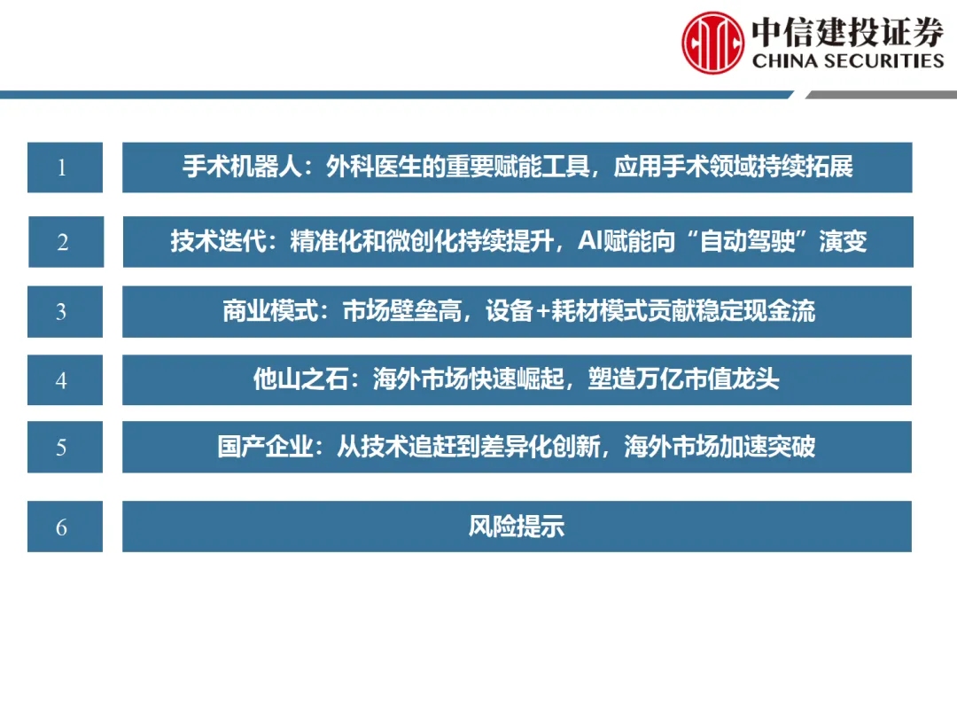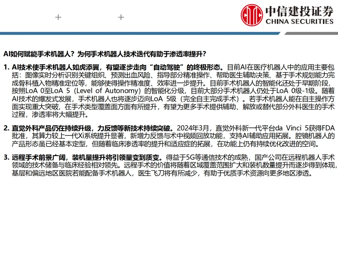 幻影视界今天分享的是医疗器械行业深度报告:《手术机器人,AI驱动辅助操作迈向“自动驾驶”,国产龙头扬帆全球市场》,报告由中信建投证券发布。