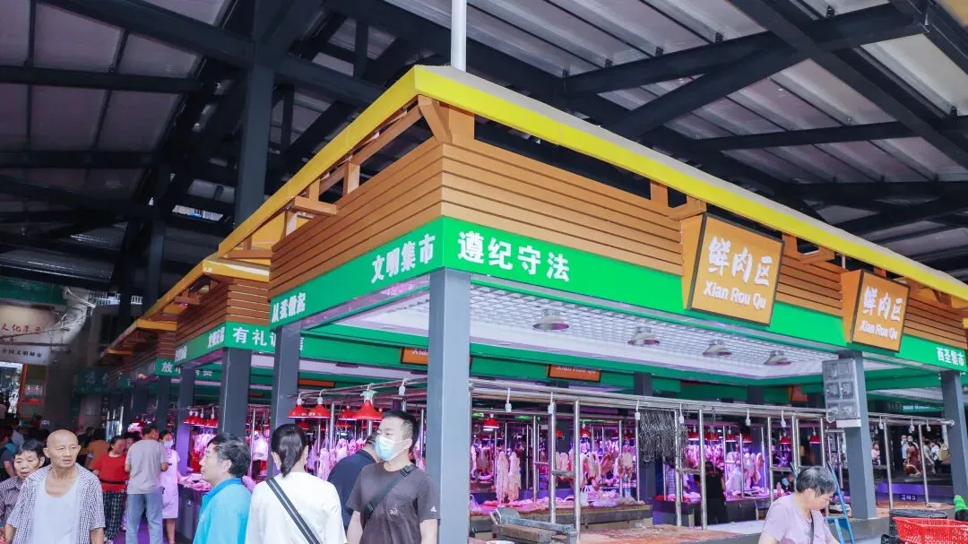据了解,西圣农贸集市于2020年8月开始提升改造工作,围绕市场场内环境、摊区布局和分区设置、消防设施、给排水系统等方面进行升级改造。如今,西圣农贸集市的提升改造工作已完成,市场内分为熟食品区、半成品区、豆制品区、鲜肉区和自产自销区等,菜肉分离,同类归集。