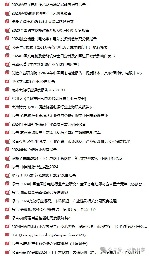 报告电子版以及400多项储能白皮书/报告(部分列表如下),可文末扫码加入储能星界知识星球会员无限下载!