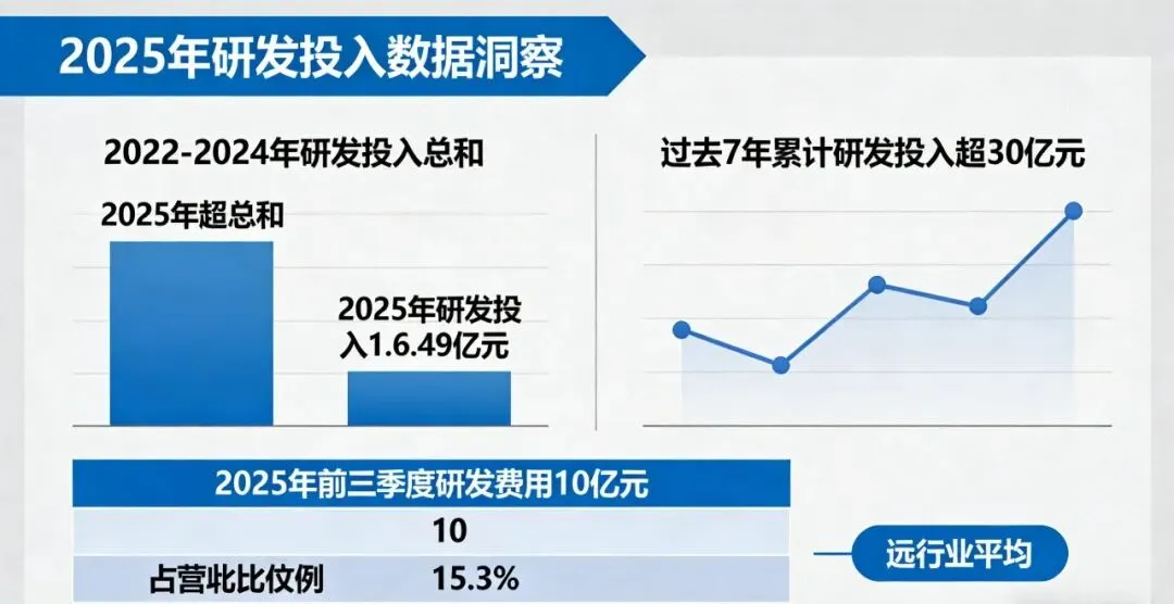 据悉,公司过去7年累计研发投入已超30亿元,2025年前三季度研发费用就达10亿元,占营收比例15.3%,远超同行业平均水平。