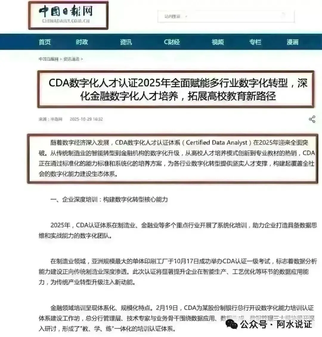 在数字化浪潮席卷全球的当下,数据已然成为企业决策的关键依据,CDA 数据分析师还与 CPA 注会、CFA 特许金融师齐名,是数据领域认可度最高的证书之一,还受到了人民日报、经济日报等权威媒体的推荐。