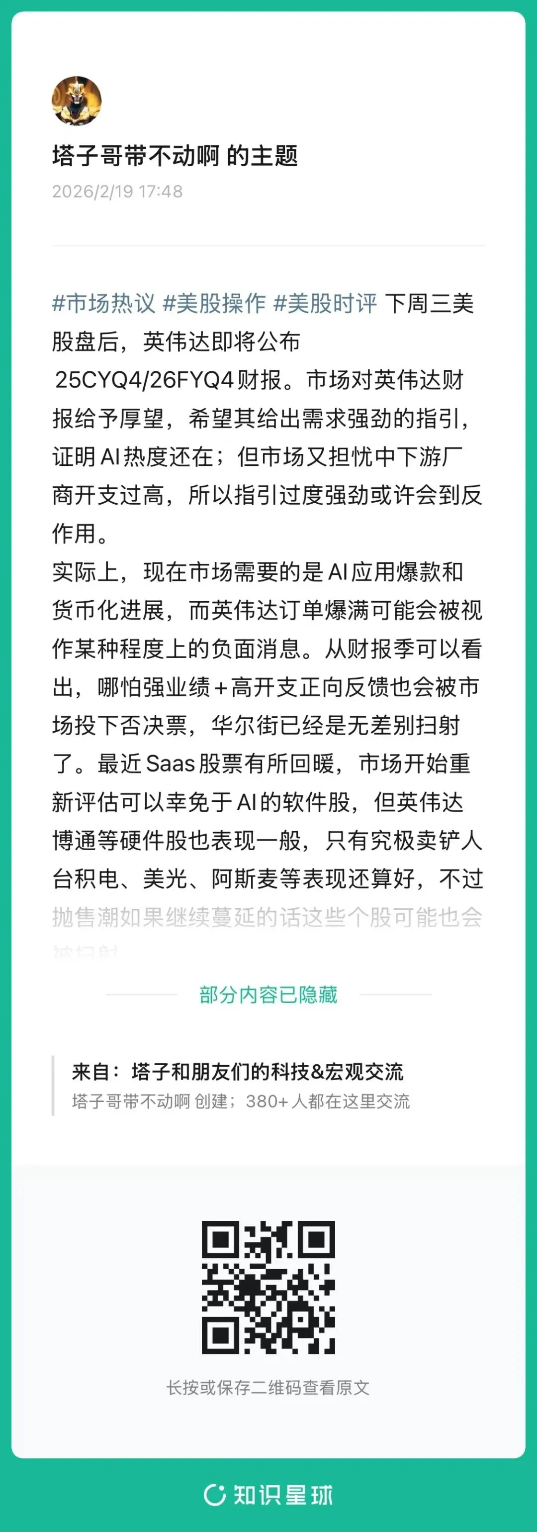 英伟达财报前瞻,外资深度报告,宏观数据展望和市场点评都已经更新,欢迎各位加入讨论。