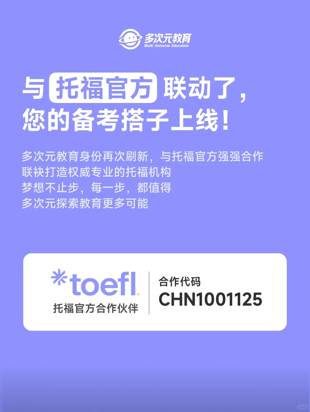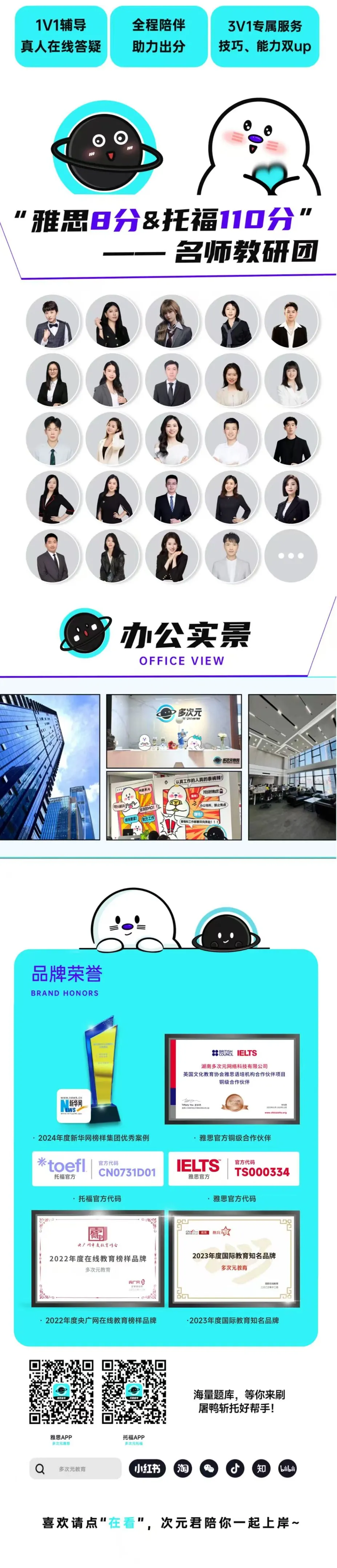 我们深耕国际教育多年,拥有托福、雅思官方双重合作资质,斩获新华网榜样集团、央广网在线教育榜样品牌等多项行业荣誉,名师教研团护航,雅思 8 分、托福 110 分导师全程指导,还有 1V1 辅导、3V1 专属服务、真人在线答疑、海量真题题库等配套服务,从备考到出分,全程陪伴,助力你攻克新托福,为留学申请筑牢基础!