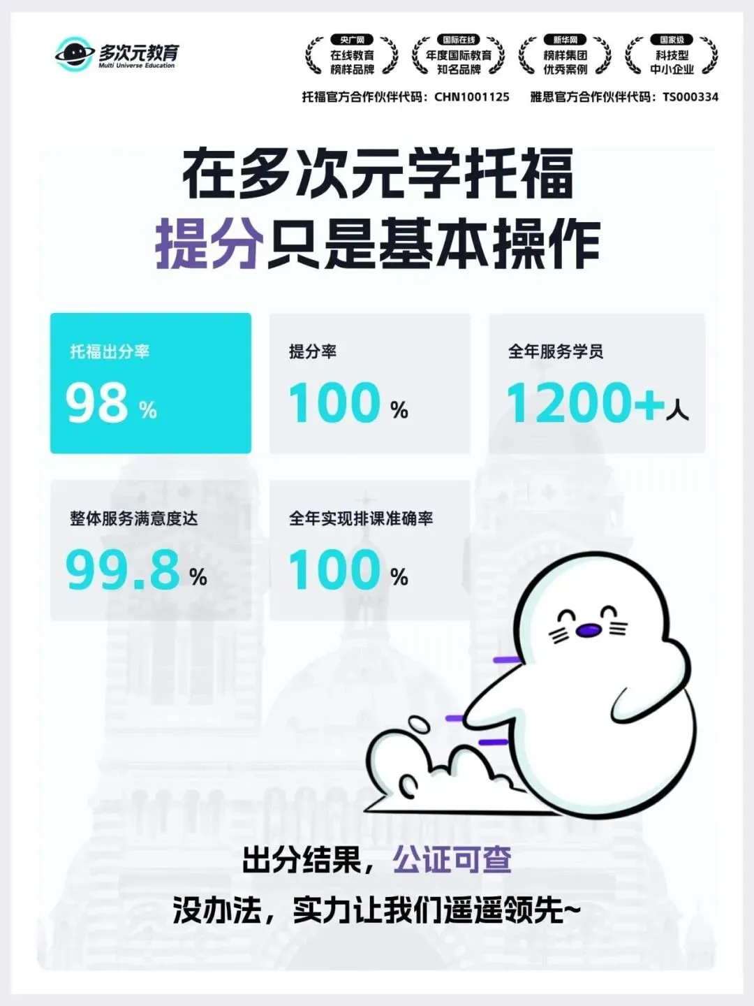 ✅ 托福出分率 98%,学员提分率 100%,全年服务超 1200+ 学员