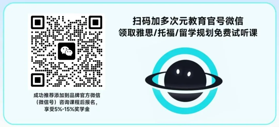 同时可解锁托福免费水平测试,精准定位自身能力,还能领取雅思 / 托福 / 留学规划免费试听课!