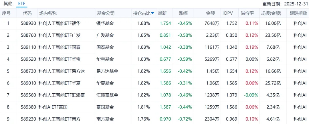 相关ETF:科创人工智能ETF