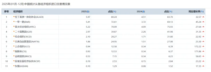 拉丁美洲一体化协会(LAIA)仍是中国最重要的银矿贸易伙伴,全年进口额达59.7亿美元,同比增长32.57%,占进口总额的绝对主导地位。其中,秘鲁为最大单一供应国,进口额26.9亿美元(+26.13%),墨西哥紧随其后,进口额18.2亿美元(+28.92%)。与拉美传统来源地的稳定增长相比,以上海合作组织(SCO)成员国为代表的新兴市场增长势头迅猛,全年贡献进口额9.4亿美元,同比激增172.22%,成为增长最快的板块。其中,哈萨克斯坦进口额同比飙升1311.30%,呈现爆发式增长。俄罗斯的进口额也达到5.1亿美元,同比增长59.18%,显示出巨大潜力。这一格局表明,中国在稳固拉美传统供应主渠道的同时,正通过“一带一路”等合作框架,积极拓展中亚、欧亚等新兴来源地,以促进进口多元化,增强供应链韧性。