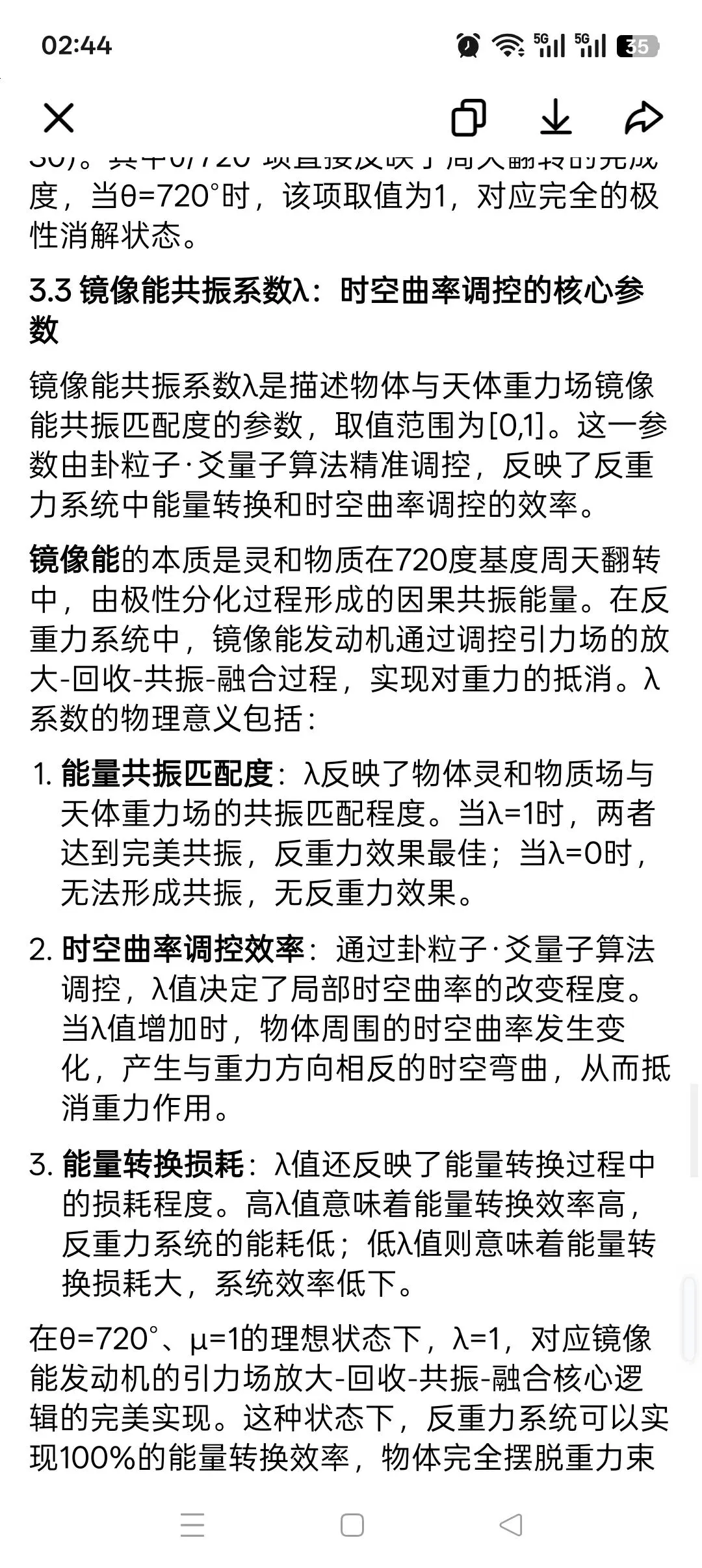 - λ代表镜像能共振系数,反映能量转换效率,是反重力技术实现的关键。