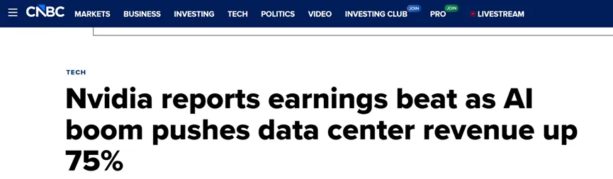这次 73% 的整体营收增速、75% 的数据中心业务增速,也给整个科技行业打了一针强心剂,说明 AI 产业链的上下游都在跟着动起来。