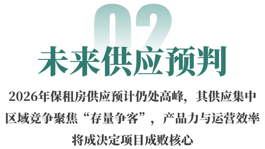 “十四五”期间筹集的保租房正陆续进入集中交付期,预计“十五五”初期市场供应仍将处于高位。随着政策导向转向“以需定建、以需定购”,各地供给规模将更趋理性,推动市场从高速增长向平稳运行过渡。