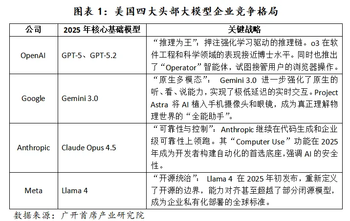 二是迎来从“感知理解”迈向“认知推理”的关键转折点。美国大模型企业研发重点已从单纯追求模型参数规模转向提升模型的深层推理、逻辑分析与复杂问题解决能力。以谷歌Gemini 3的“Deep Think”模式和OpenAI的o3系列为代表的深度推理模型,通过模拟人类深思熟虑的认知过程,先对问题进行分解与重构,然后进行多角度分析,最后进行综合评估与验证,本质上是通过增加计算资源分配与延长推理链来应对特别复杂的问题。随着原生多模态技术逐渐成熟,视觉推理与理解能力取得显著突破,不再局限于简单的图像识别或描述,而是能够进行深层次的视觉推理,理解图像中的逻辑关系和抽象概念。谷歌Gemini 3在Video-MMMU测试中达到87.6%,OpenAI o3在视觉推理方面实现了“以图像思考”的突破,模型能够在思维链中直接融入视觉信息,而非将图像先转化为文本再处理。尽管2025年美国大模型在推理能力方面取得了显著进展,但其仍存在明确的技术边界与能力局限。最突出的表现是在需要高度创造性思维与严格推理链的复杂问题上,如美国数学奥林匹克竞赛(USAMO)级别的问题,所有受测模型的平均得分均低于5%。这一结果表明,当前大模型的推理能力在应对结构性不良问题与全新挑战时仍存在根本性局限。