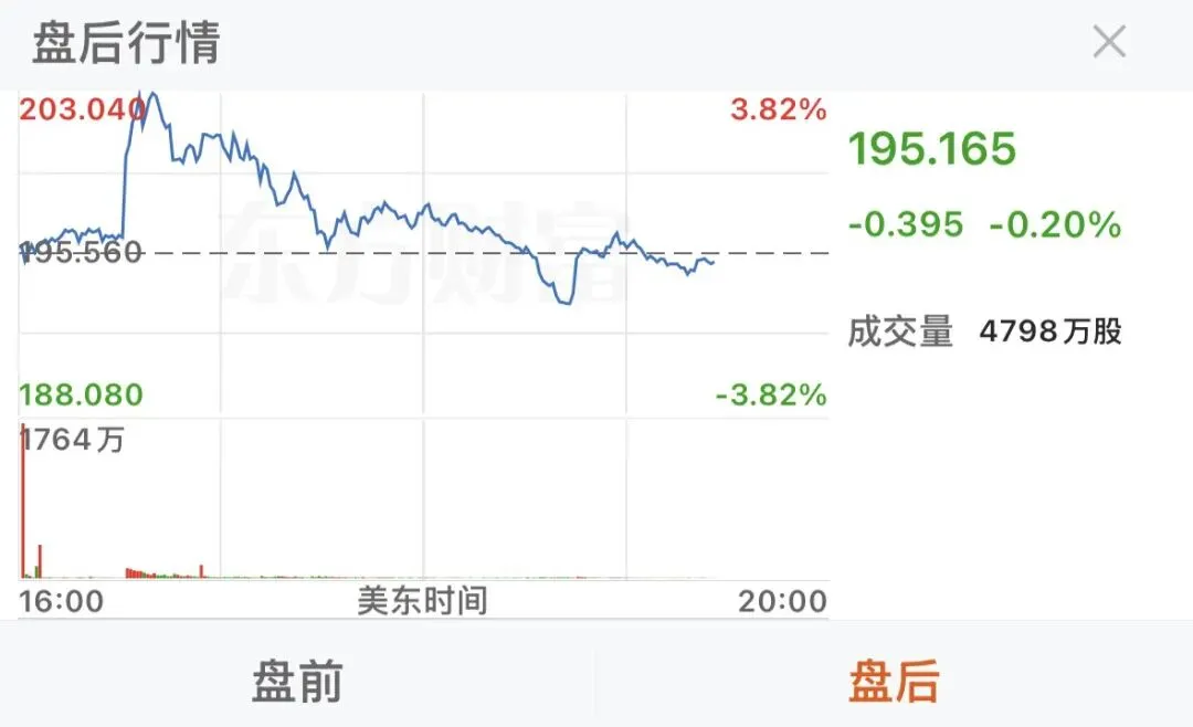 从盘后交易数据来看,英伟达股价一度飙升至203.04美元,涨幅超过3.82%,虽然随后有所回落,但仍维持在195美元上方,显示出市场对其业绩的高度认可。