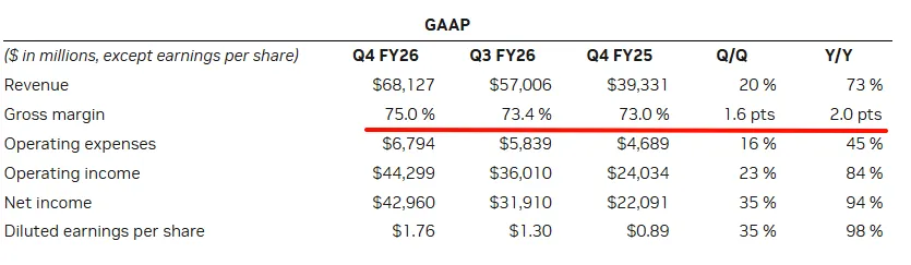 随着布Blackwell芯片的产能在全年持续爬坡,英伟达的利润率也迎来实质性回升。毛利率 75.2%与高盛的 75.2%和市场的 75.1%相符,运营利润率 67.7%与高盛的 67.7%和市场的 67.6%相符。