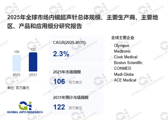 全球内镜超声针市场正处于一个成熟且稳定的发展阶段。据GIR (Global Info Research)调研数据显示,按收入计,2024年全球该领域市场规模约为104百万美元。随着早癌筛查意识的普及及微创诊疗技术的推广,市场需求保持 steady 增长,预计到2031年,市场规模将达到122百万美元。在2025至2031年期间,市场年复合增长率(CAGR)预计为2.3%。这一温和的增速反映出该细分市场已高度专业化,增长动力主要来源于现有诊疗量的自然提升及高端产品的迭代替换,展现出极强的抗波动性与确定性。